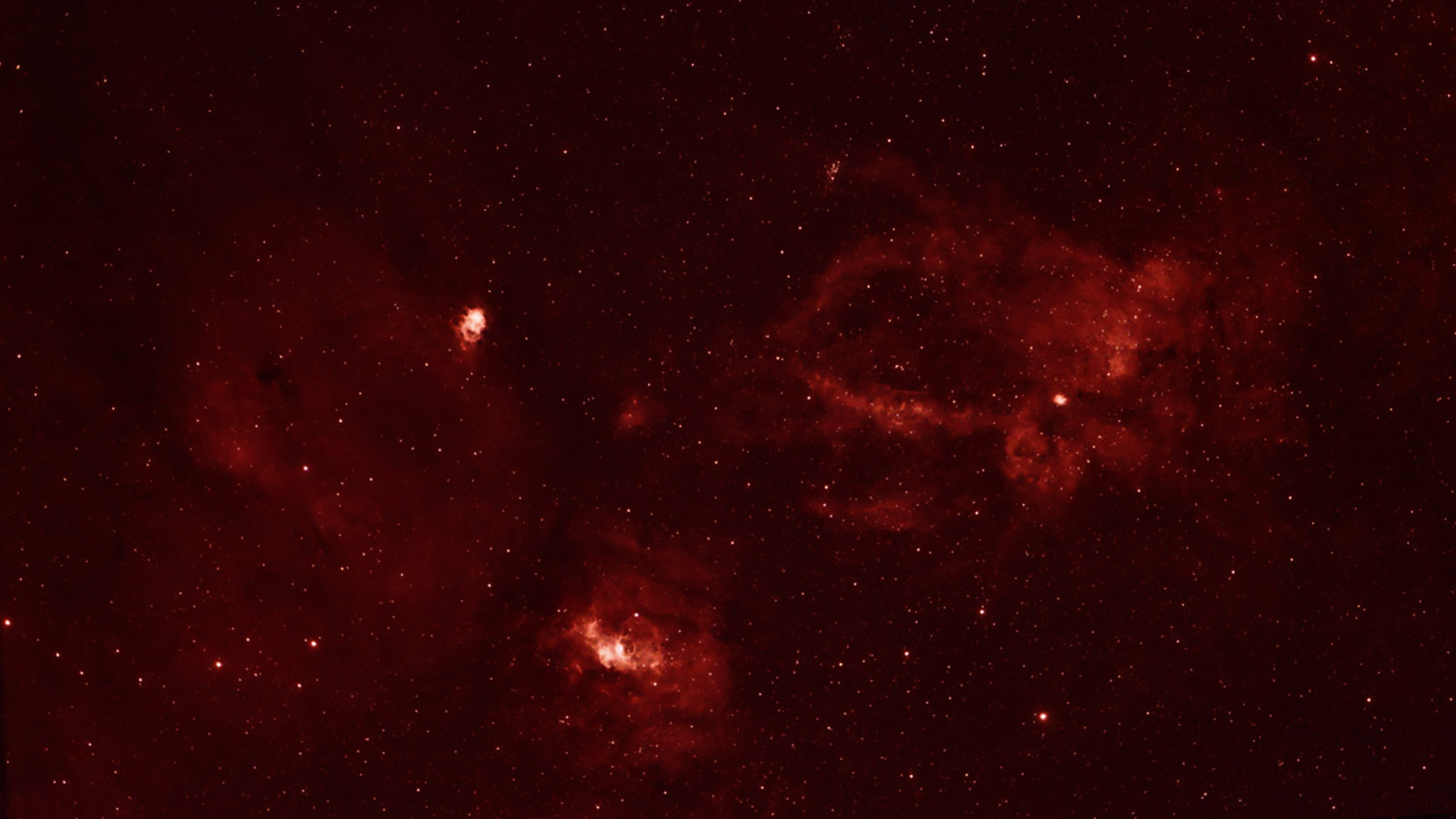 The image above is the result stacking 116 exposures totaling 10 hours, 34 minutes at f2.8 and ISO 800 through a 6nm hydrogen alpha filter.